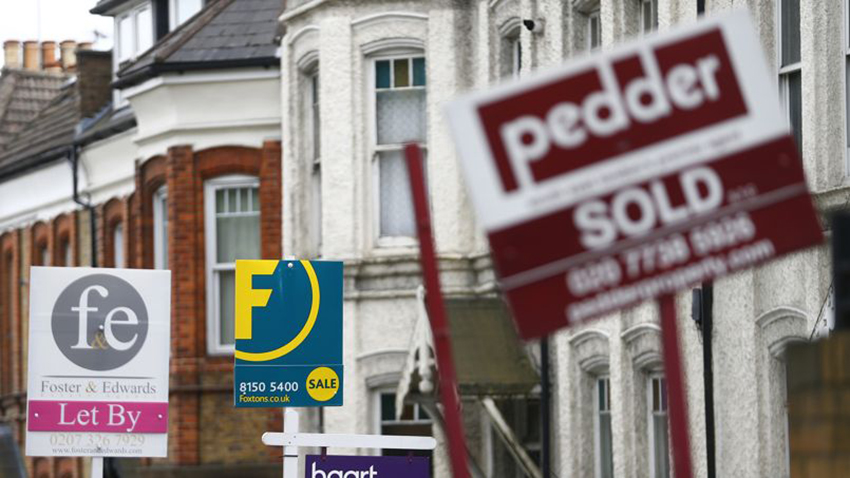 Estate agents boards are lined up outside houses in south London June 3, 2014. Britain’s house prices rose at their fastest annual pace in nearly seven years last month and signs of bottlenecks in the construction sector underscored the upward pressures on the market, surveys showed on Tuesday. House price growth picked up to an annual pace of 11.1 percent in May, mortgage lender Nationwide said, fanning concerns that the property market could be overheating. REUTERS/Andrew Winning (BRITAIN – Tags: POLITICS BUSINESS REAL ESTATE) – RTR3S0I0